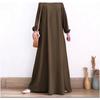 Rochie de damă cu mânecă lungă, cu guler rotund și elastic, de culoare solidă, mărime Plus