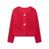 Women Fashion With Pockets Red Single Breasted Knitted Sweater Vintage O-Neck Long Sleeves Female Chic Lady Outfits