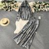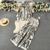 Tricotat cu imprimeu vintage Seturi 2 piese Tricoturi casual pentru femei Hanorace cu fermoar cu glugă Paltoane Talie înaltă Pantaloni largi Costume