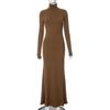 Această rochie elegantă de damă face parte din Colecția de toamnă europeană și americană, concepută pentru a face o declarație. Fabricat din poliester de înaltă calitate, asigură o potrivire confortabilă și confortabilă. Rochia are un guler înalt și o croială subțire care accentuează contururile naturale ale corpului, în timp ce tivul coadă de pește adaugă o notă de rafinament și fler.. Perfectă atât pentru ocaziile formale, cât și pentru serile elegante, această rochie de culoare uni este un plus atemporal pentru orice garderobă.