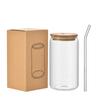 Pahare de băut cu capace de bambus și paie de sticlă Pahare de sticlă de 16 oz cu capace și paie Pahare de bere cu gheață