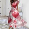 Moda dama ocazional plisat cu decolteu in V cu cordon Rochii imprimate de Valentine's Day