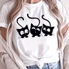 Cotton Black Cat Print T-Shirt Women's White Cotton Short Sleeve Summer Cute Pattern T-Shirt Summer Oversized Casual White T Shirt