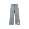 Blugi rupți vintage Pantaloni drepti pentru femei cu un mop lat