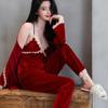 Women's Sexy Velvet Fabric Pajamas Autumn and Winter Sexy Lace Luxury Noble Ladies Home Wear Pajamas