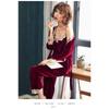 Pijamale pentru femei, toamnă iarnă, sexy, catifea aurie, cu mâneci lungi, costum de cămașă de noapte pentru femei, de marime mari, pentru acasă, set din trei piese