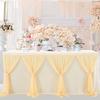 Uses: These pleated rectangular table skirts are very suitable for rectangular tables, round tables, baby parties, princess party decoration, home decoration, baby party tablecloths, birthday parties, baby 1st birthday parties, weddings, baptism decoration girls, holiday parties, etc.