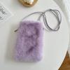 Women Plush Crossbody Bag Solid Color Mobile Phone Bag Versatile Mini Wallet Plush Shoulder Bag Autumn and Winter