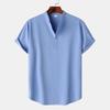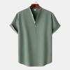 Cămașă de vară casual pentru bărbați, din bumbac și in, culoare uni, cu mânecă scurtă și guler înalt