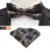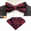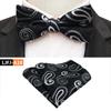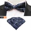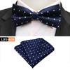 Dimensiunea papionului este 12x6cm, dimensiunea prosopului de buzunar este 25x25cm