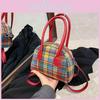 Geantă de mână mini tip scoică nouă de toamnă cu carouri contrastante, modă, geantă crossbody mică, material moale, geantă de umăr de designer pentru femei