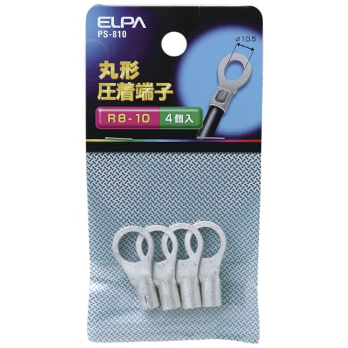ELPA Round Terminal (R8-10) Round Crimp Terminal R8-10 29.8mm 2.89~3.65mm Stranded Wire 6.64~10.53 4 Pieces PS-810