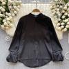 Cămașă de damă Flori tridimensionale cu mânecă lungă Bluză din satin temperament Topuri de primăvară