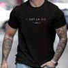 Men's Summer Loose Fit 100 Cotton cest La Vie PrintT-shirt Tops