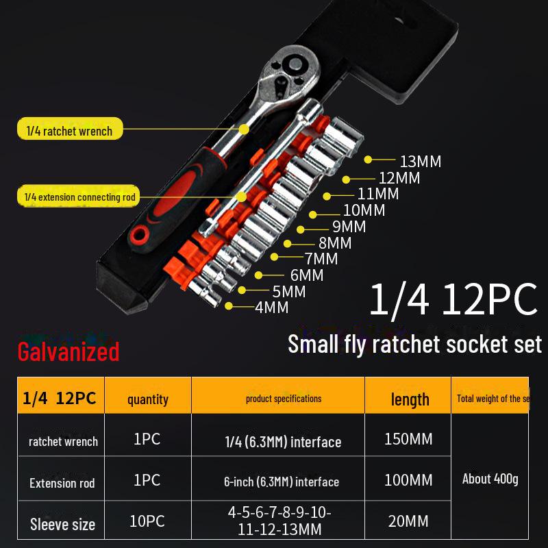 Xiaofei 12 piese 1/4" Set chei cu clichet pentru reparații auto și acasă