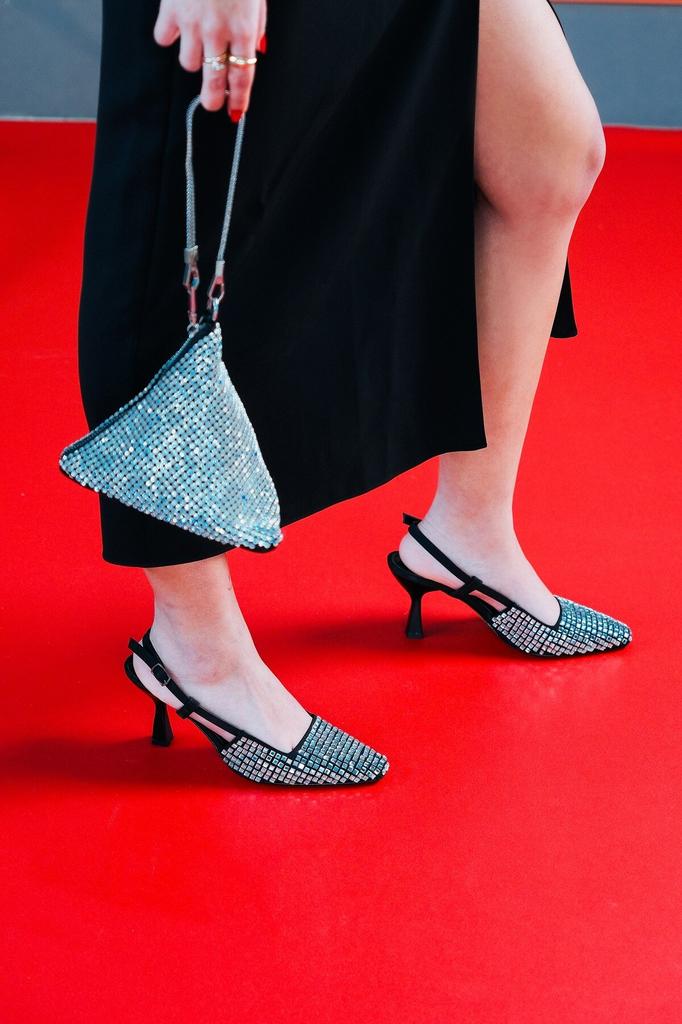 Women's Fashion Style Special Design Black Black Silver Glitter Stone Design High Heel Shoes