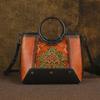Geantă de mână retro pentru femei, din piele, cu imprimeu de mare capacitate, din piele de vacă tăbăcită vegetală, cu un singur umăr