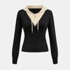 Women's Hooded Knit Long Sleeve Slim Solid Colour Splicing Bottom Shirt Top
