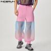 INCERUN Bărbați Degradat Tie Dye Mesh Patchwork Pantaloni Talie Înaltă Pantaloni Transparenti