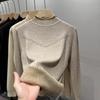 Pulover de bază cu gât semi-înalt pentru toamnă și iarnă pentru femei, cu dantelă de catifea adăugată, îngroșat, dintr-o singură piesă, pulover tricotat din catifea pentru căldură și croială lejeră