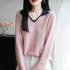 Tricou cu mâneci lungi de toamnă și iarnă pentru femei, tricou de bază, top larg cu gât în V, pulover tricotat cu pulover pe dedesubt