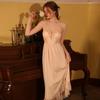 Costum Robă Nou pentru Femei Primăvară Satin Dantelă Rochie Lungă cu Spatele Gol Căptușit Pijamale Casual Sexy pentru Femei