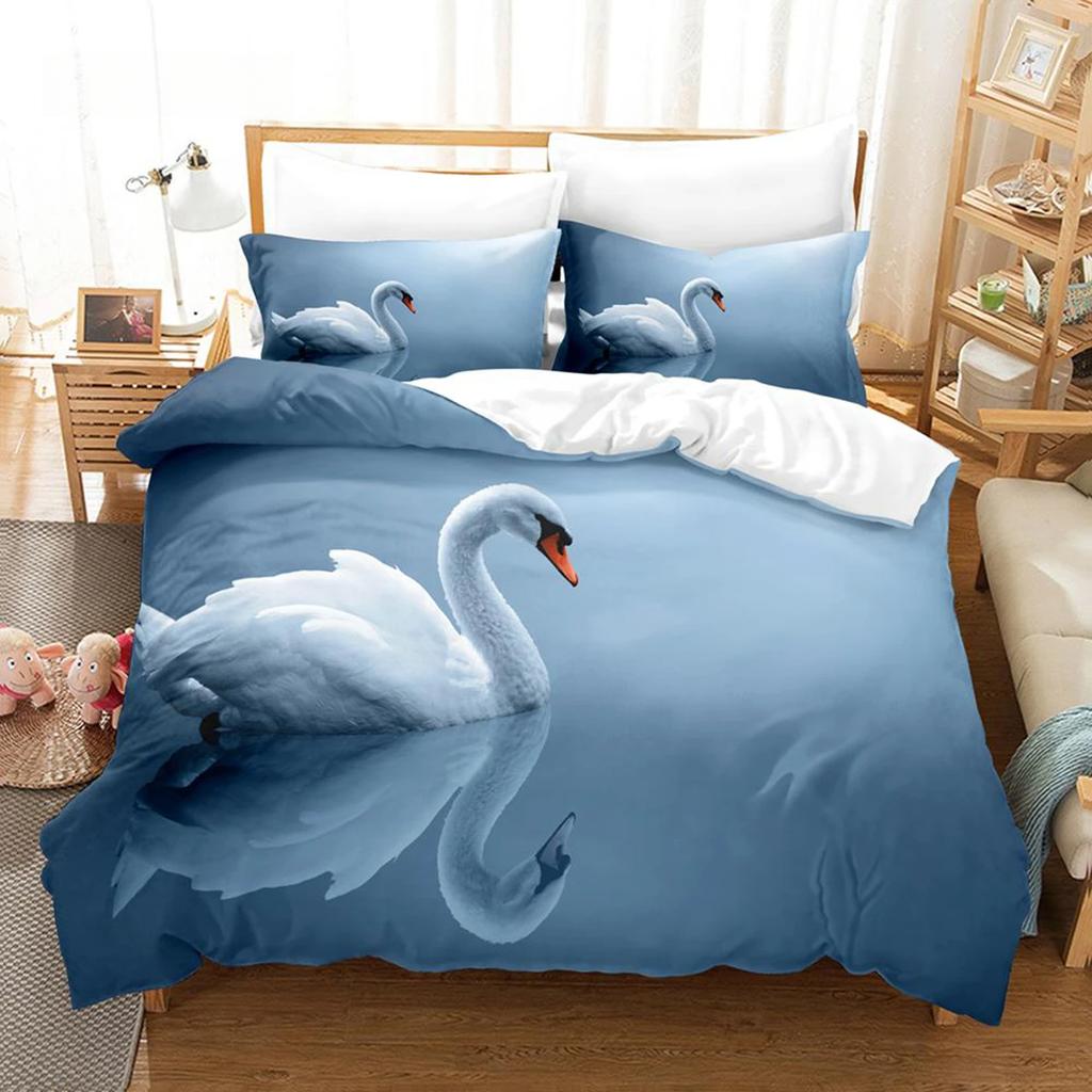 Swan Duvet Cover Set Twin Swan Bedding Set Microfiber Queen King Size Birds Romantic Style Quilt Cover Wild Animals for Girl Boy