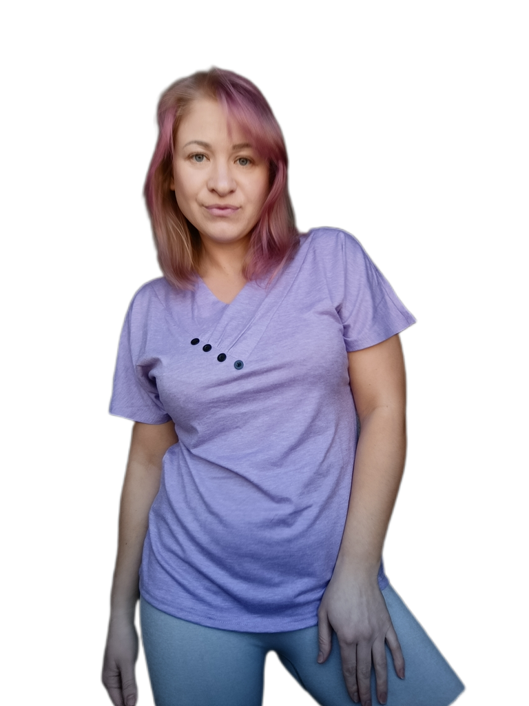 Tricou de vară pentru femei. Foarte plăcut pentru corp. Culoarea nu este la fel de saturată ca în fotografie.. Marimea S se potriveste unei marimi de piept de 92 cm. Luna de livrare. Ambalajul este bun.