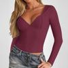 Top de damă, de culoare uni, cu decolteu în V, ocazional, cu mâneci lungi, cu o formă subțire
