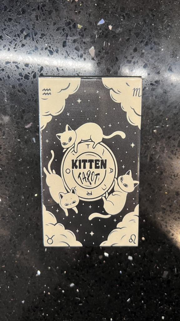 Kitten Tarot Deck 78 bucăți drăguț alb-negru pentru începători, versiune misterioasă, joc de masă, distracție, set de ghicire
