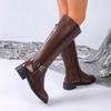 Pantofi de damă 2024 Brand Fermoar lateral Cizme pentru femei Moda Decorare metalică Cizme moderne pentru femei Vânzare fierbinte Cizme cu vârf rotund până la genunchi