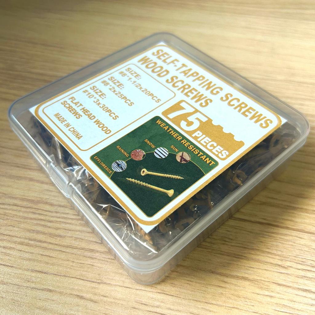 75PCs Yellow Screws, Fully Machined Finished Male Threads, Countersunk Smooth Shank, T-25 Star Drive, 6-Point Tight Bite