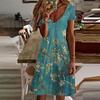 BITCED Moda dama vara primavara imprimeu floral cu maneca scurta cu decolteu in V rochii casual