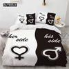 Husă de plapumă alb-negru cuplu set de lenjerie de pat dublu alb-negru partea ei și partea lui husă de plapumă poliester completă queen king