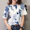 Tricou pentru femei europene și americane la modă, cu model de flori cu plante, imprimare 3D, ocazional, top cu mânecă scurtă, cu gât rotund