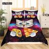 Set Husă Plapumă Pisică Cadouri pentru Iubitorii de Pisici Set de Lenjerie de Pat Microfibră Model Pisoi Drăguț Temă Animal Dimensiune Dublă Queen King Husă Plapumă