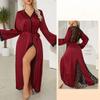 Halat Sexy de Damă Solid pentru Acasă Desire Mătase Satinată Halat Lung Dantelă Lenjerie de Noapte Rochie