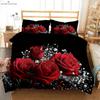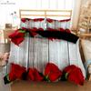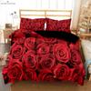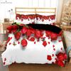 Set de lenjerie de pat cu husă de pilotă cu imprimeu retro roșu trandafir inimă de Ziua Îndrăgostiților, textile, husă de pilotă, față de pernă, lavabil la mașină, 3 piese