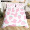 Husă de pilotă Milk Cow King Queen, roz alb, set de lenjerie de pat cu animale din desene animate, căpșuni, pentru copii, băieți, fete, cu imprimeu de vaci, husă de pilota moale