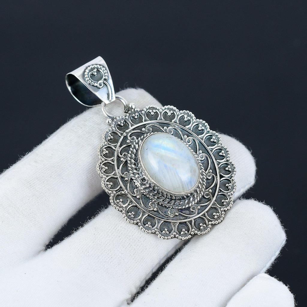 Pandantiv cu piatră de lună curcubeu Bijuterii lucrate manual Colier din argint 925 cu piatră de lună strălucitoare naturală Bijuterii cu pandantiv cadou pentru el de Anul Nou