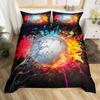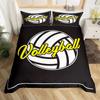 Set husă de pilotă volei, Set de lenjerie de pat cu tematică sporturi cu minge pentru băieți, adolescenți, decor dormitor, husă de pilotă neagră cu 2 fețe de pernă