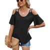 Women's Spring and Summer New Solid Colour V-neck Strapless Loose Short-sleeved Tops