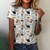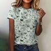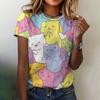 Tricouri cu mâneci scurte, cu mâneci scurte, cu pisicuță, cu desene animate, top casual, din bumbac pur, cu gât rotund