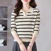 Autumn Women's Fashion Lapel Striped Short Versatile Bottoming Knitwear