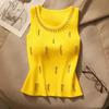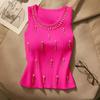 WTEMPO Primăvară Vară Mărime Mare Culoare Solidă Casual Tricotat Maiouri Femei Toamnă Versatil O-Gât Fără Mâneci Perle Topuri