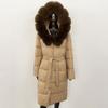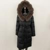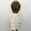 OFTBUY Jachetă de iarnă pentru femei, cu guler de blană de vulpe, jachetă cu glugă, groasă, caldă, pălărie de toamnă, detașabilă, lungă X, cu puf de rață.