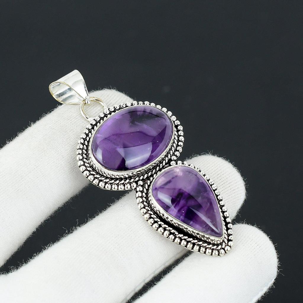 Natural Amethyst Gemstone Handmade 925 Sterling Silver Jewelry Pendant, Double Stone Pendant, Holiday Gift for Her Jewelry for Special Occasions