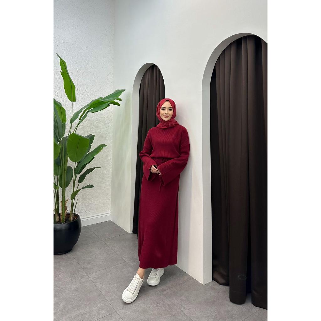 10numberamoda Women's Bat Sleeve Long Knit Dress Claret Red