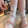 Șosete drăguțe cu broderie de pisică de desene animate pentru femei, ocazional, în dungi, la modă, șosete pentru femei, hip hop, skateboard, școală, fete, șosete cu tub mijlociu, șosete