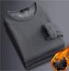 Cămașă termică de catifea cu mânecă lungă pentru bărbați, croială slim fit, gât rotund - Îngroșată pentru toamnă/iarnă